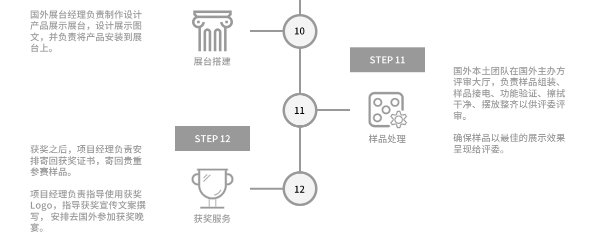 在德国、美国、日本等国家都有当地奖项服务团队,提供国际物流、清关、展台搭建、产品安装调试等一条龙服务